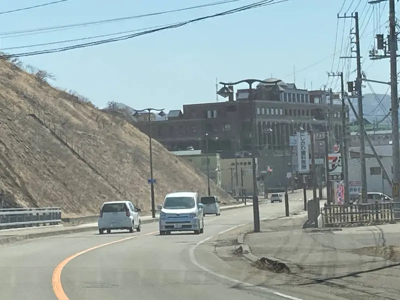 台風上陸前にえりも市街地に到着したウエスギ専務。
