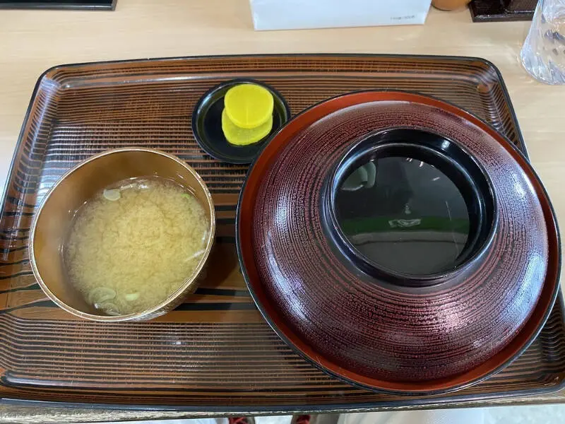 そして丼にもお味噌汁のお椀にも蓋が被せられて出てきます。出前ではなく店内ですぐに食べるので、冷めることがないのに、わざわざ蓋が被せられているとは、何とも高級感がありますね。