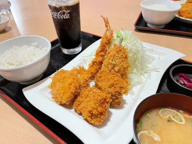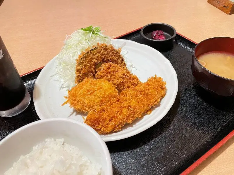 どちらの定食もいろいろなフライに、お味噌汁もついているのでしっかりとお腹を満たしてくれる定食です。一日動いた体に十分なエネルギー補給をするのには定食って魅力ですね。