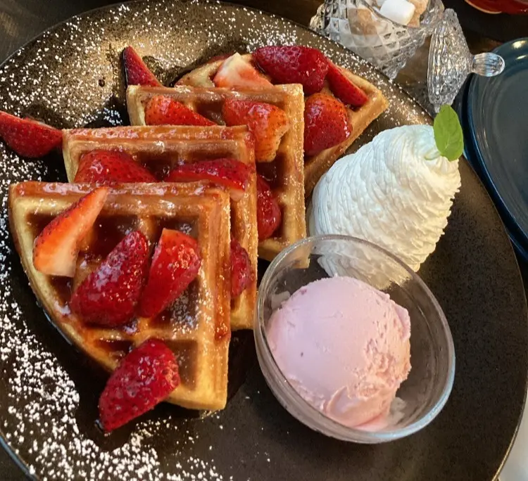 贅沢に甘酸っぱいイチゴが使われていて、甘いワッフルやアイスとも合ってとても美味しかったです。