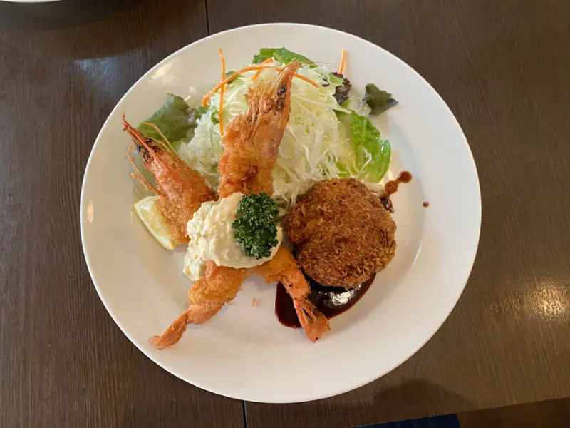 海老フライ、メンチカツともにザクザク衣で食べ応えが◎