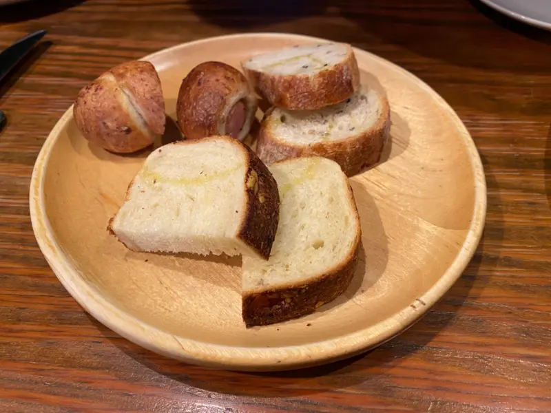 パンは小麦のいい香りがします。黒ゴマ入りのフランスパン、フォカッチャ、ソーセージパンかな?どれも歯ごたえしっかり目。私の好みです。美味しすぎる!