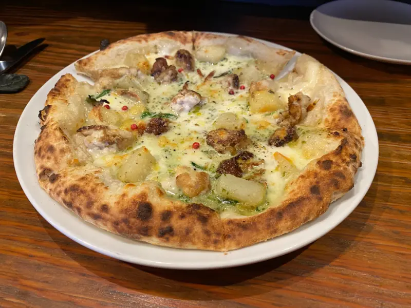 「海piz 真だち、桜海老、じゃがいも、モッツアレラのジェノベーゼソース(1800円)」