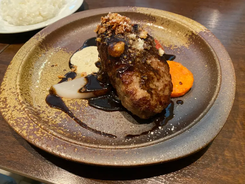 コク深いデミグラスソースはハンバーグとの相性抜群でハンバーグは結構しっかり目にこねられていました。粗びきハンバーグとは真逆な食感です。