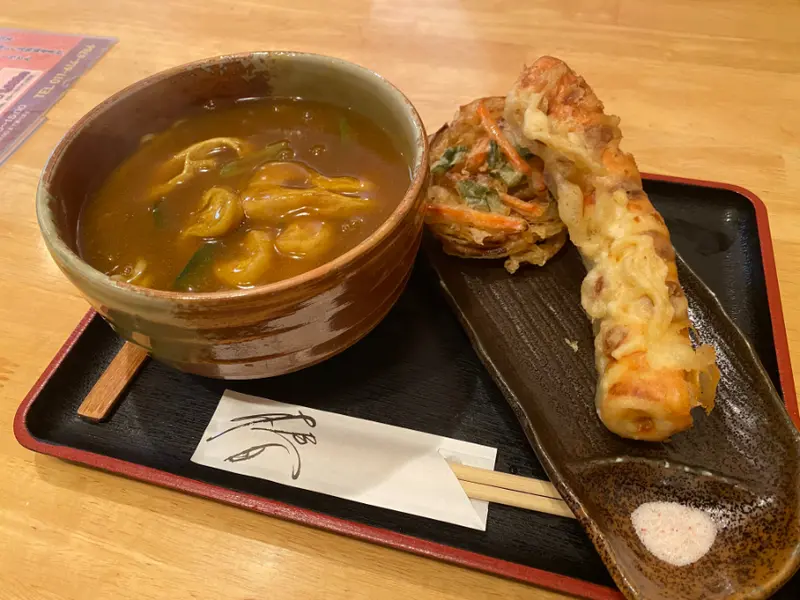 たっぷりなかれーうどんと天ぷら2つセットで860円はお得すぎますよね。