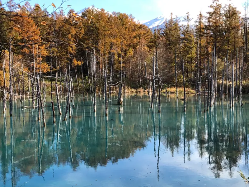 まず私がこの時期おすすめする観光スポットは、北海道を代表する観光地の一つ、美瑛町にある「青い池」です。