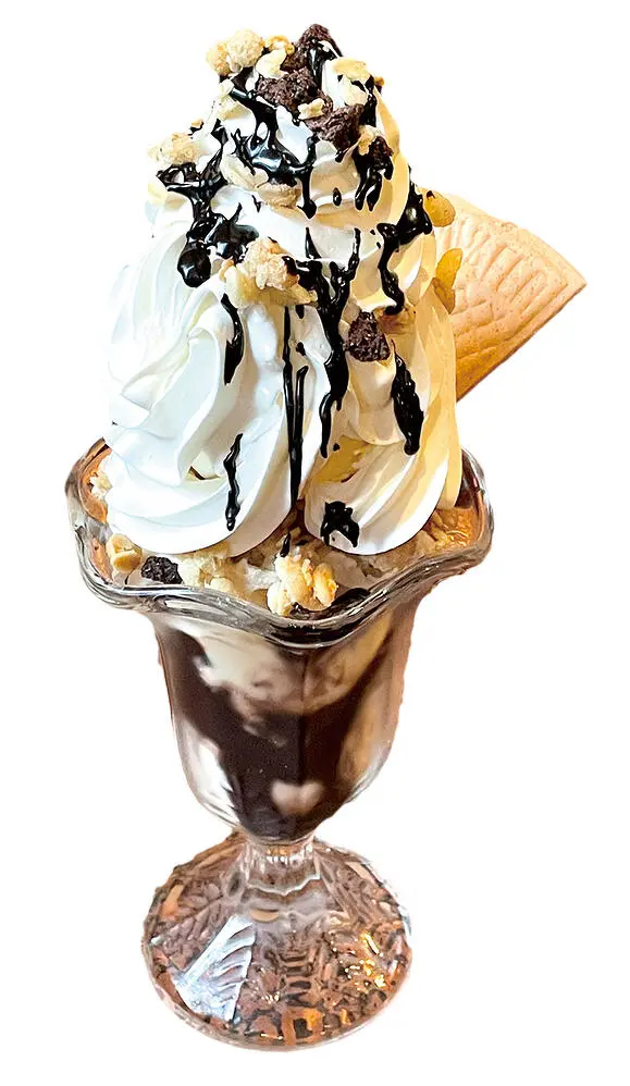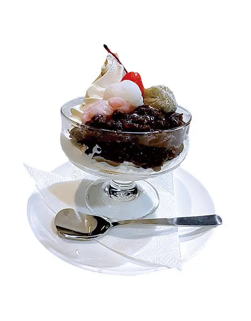 1979年創業の老舗喫茶店。喫茶店でありながら、ラーメン、スパゲティ、あんかけ焼きそばなどフードメニューが充実しているのも人気の理由。喫茶店のスパゲティ(パスタではなく、スパゲティ!)って妙に食べたくなる時ありますよね〜。こちらのおすすめパフェは、創業からずっと変わらない定番の味「チョコレートパフェ」です。たっぷりなクリームに、大胆にチョコがかかっているこの佇まいは一度試したらクセになるパフェです。