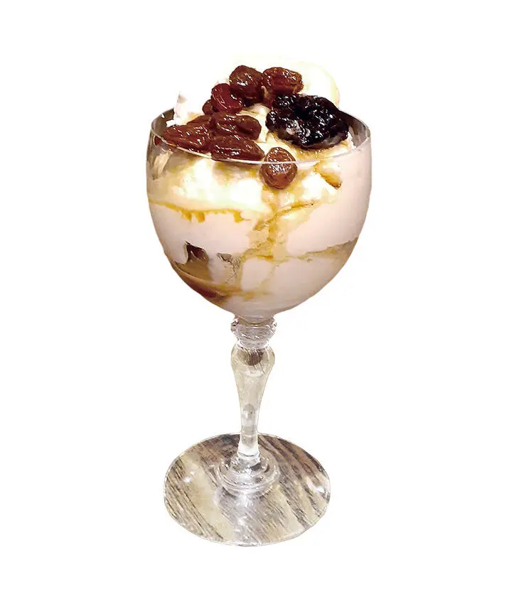 ポップな色調の店内にはアップライトのピアノが置いてあり、全体的にお洒落な雰囲気かつ、ついつい長居したくなる居心地の良さが特徴の洋食レストラン。煮込みハンバーグや、オムライスなど、洋食定番メニューが人気ですが、スイーツメニューも豊富です。今回おすすめする「ラムレーズンパフェ」は、6種類のラム酒に10種類のレーズンを3カ月漬け込んだおとなのパフェ。スイーツ好きからお酒好きな方まで幅広く満足いただける絶品パフェです!