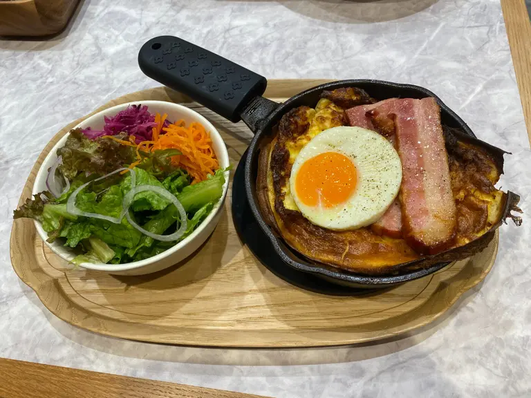 甘いクラフティと塩味のあるベーコン&エッグの組み合わせ最高でした。
