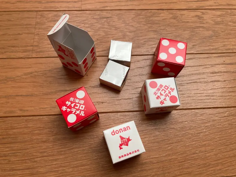 大きなキャラメル2つ入りのサイコロが5個。 すごろくや運試しにも大活躍☆