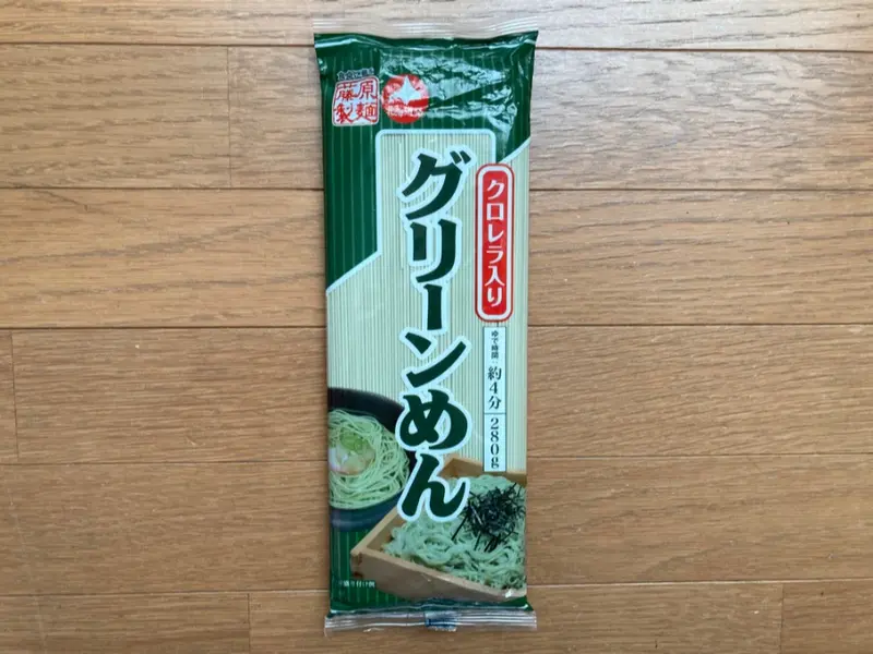 グリーンめんは、つるっと喉ごしのよいひやむぎです。(味は普通のひやむぎです)