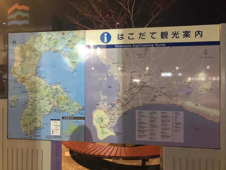 函館駅前の観光案内図を確認して