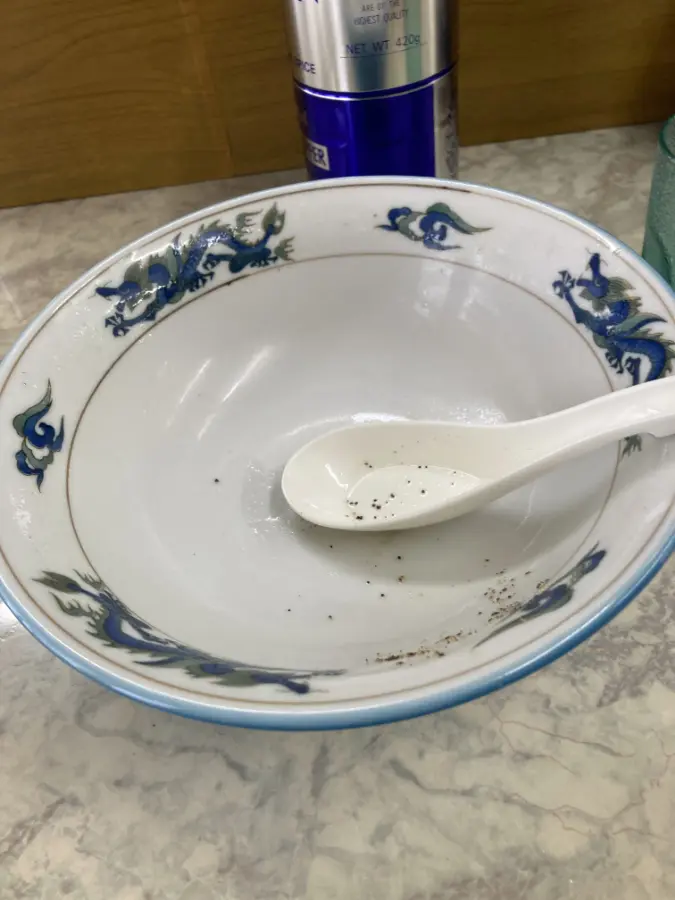 注文を伝えると店を出て、少しして空きのどんぶりを4つ持ってきたマダム