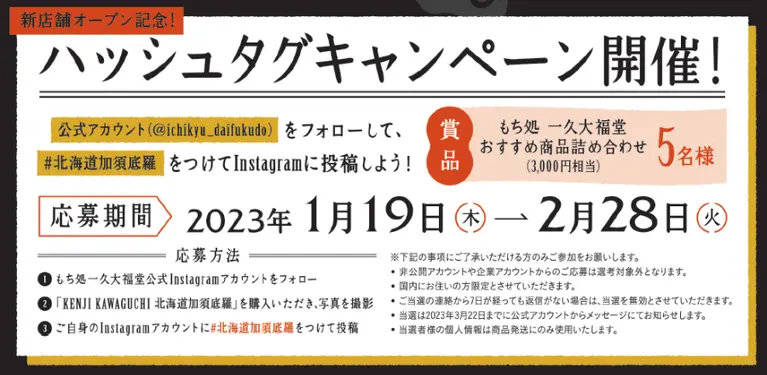 もち処一久大福堂Instagram公式アカウント(@ichikyu_daifukudo)をフォローし、