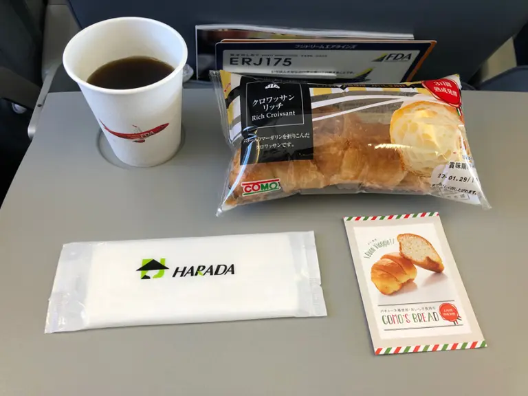 FDAでは、早朝便に乗ると愛知県小牧市に本社があるコモパン(株式会社コモ)のパンがサービスで頂けます。このパンが美味しくてありがたい!