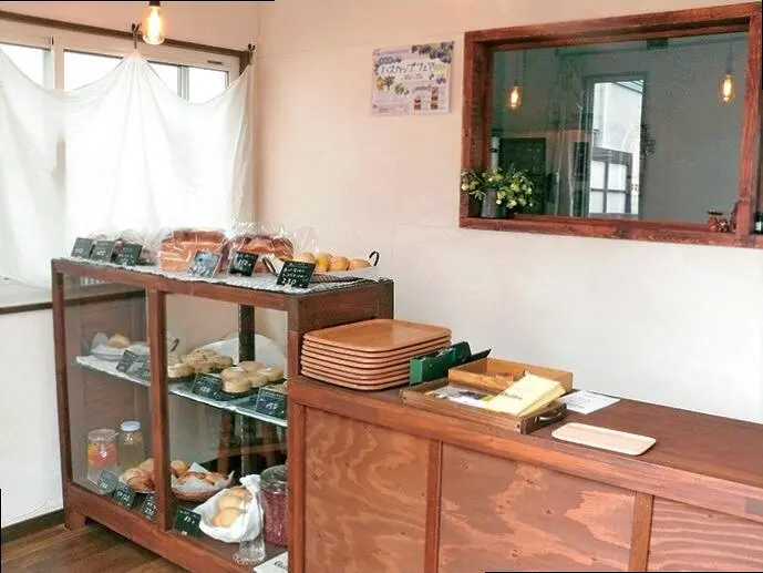 2019年5 月オープン。開放的な店内にはイートインスペースがあり、主婦や学生でにぎわう。商品の中には卵、牛乳不使用の無添加パンもあり、アレルギーを気にする人に好評だ。