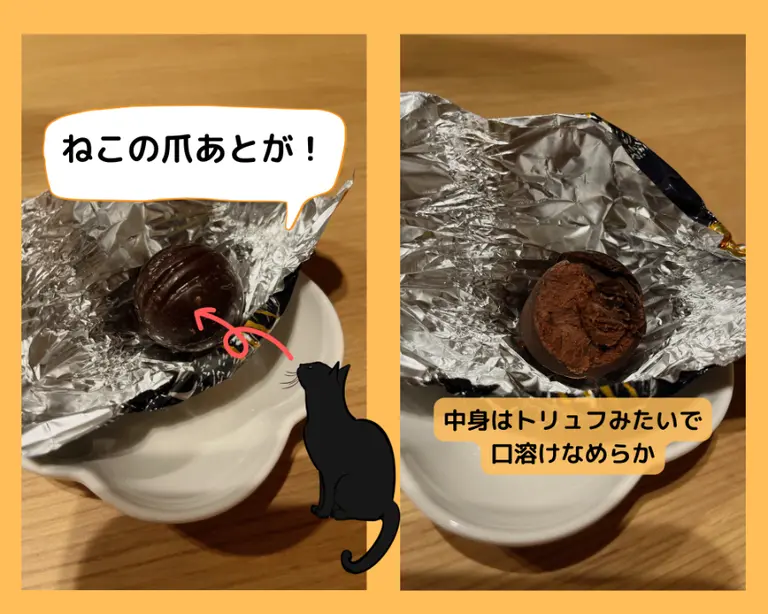 包み紙を開けるとにゃんとネコの爪あとが!