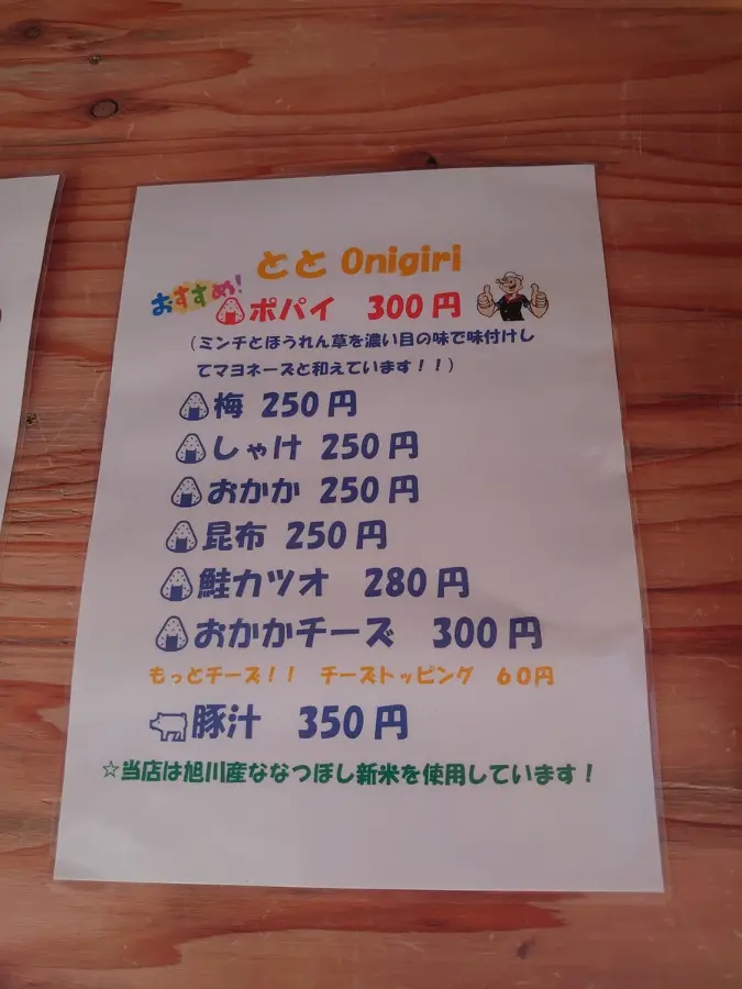 先ほどのホッカイダーベースから富良野に向かっていき、千代ヶ岡駅の近くに「ととおにぎり」があります。こちらのお店は2022年12月24日にオープンしたばかりでテイクアウト専門のおにぎり屋さん。
