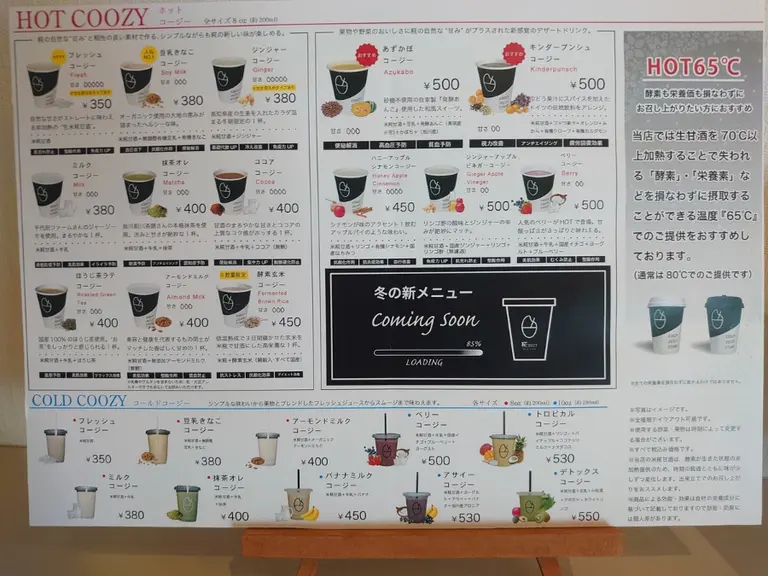 ちなみに、ここのホットは65度で酵素も栄養価も損なわない様になっているそうで、しかもこの温度は飲みやすい!