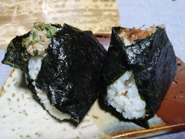 梅、しゃけ、おかか、昆布、鮭カツオ、おかかチーズ。