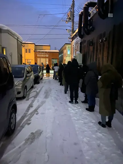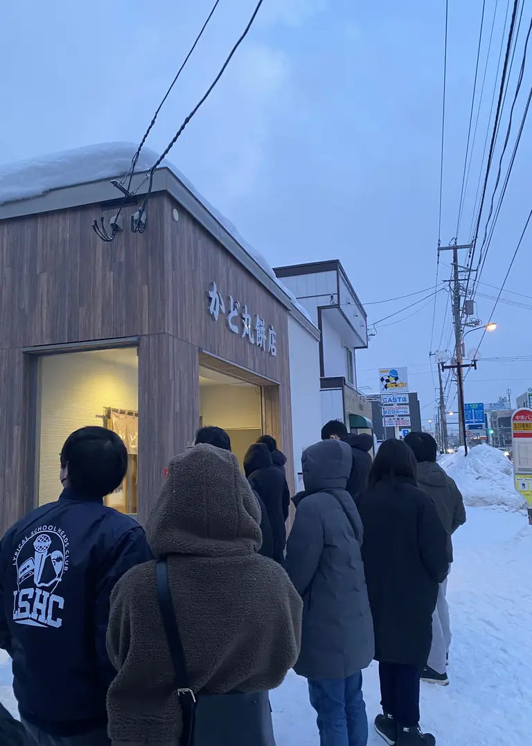 この日はたまたま雪も降っておらず、気温もマイナス4℃くらいだったのでそこまで辛くはありませんでしたが、この1~2月の時期だとマイナス8~9℃までは下がると思うので、しっかりと防寒対策は必要です。皆さんフードを深くかぶっていました。