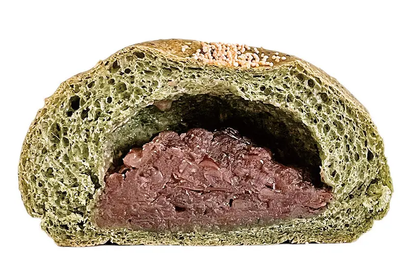 調理パンとはカテゴリーが異なるのですが、今回ぜひ紹介したいのが「よもぎあんぱん」です。パンは北海道産の小麦粉を使用し、よもぎは青森産、あんは十勝産小豆を使った小倉あん。たっぷりよもぎが入っているので、パン生地にもしっかりよもぎの緑色がついています。甘めの餡とよもぎのバランスが絶妙。一見シンプルなあんぱんのように見えますが一口食べると今まで食べたことのないような風味に感動します!