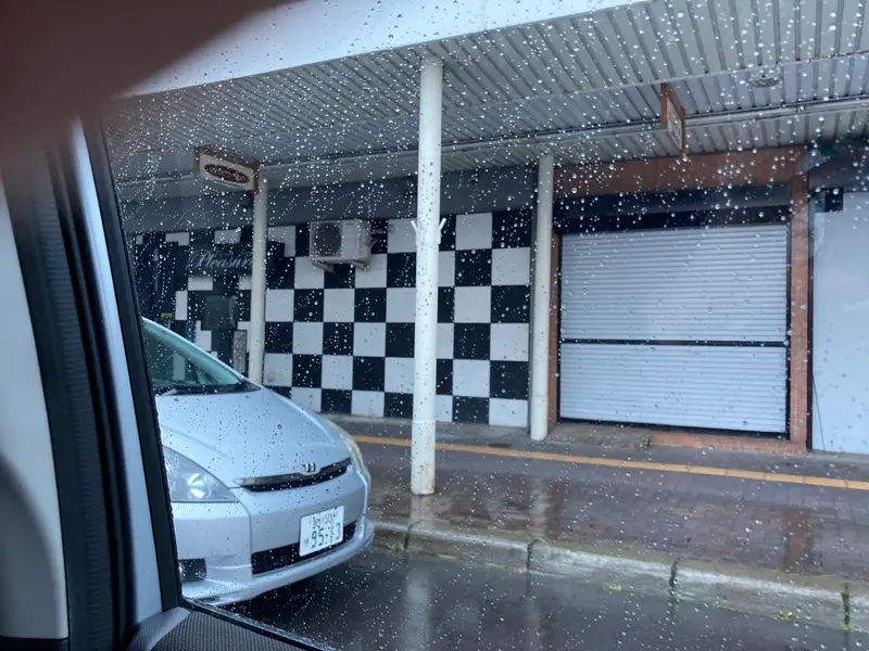 その後、名寄市西3条南5丁目「ぶんく・もりざね」前辺りで、道の向こう側の特徴的な市松模様の外壁「スナックプレジャー」前から「センムー!」と声が。