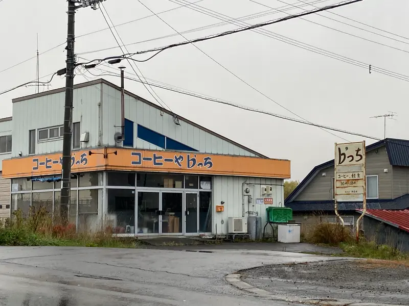旅の活力となるふれあいの後、「コーヒーや♭’っち」という看板を見つける。