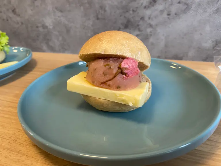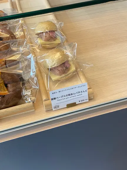 こちらで販売されている桜スイーツは、「黒糖ベーグルの桜あんバタさんど」(350円)です!