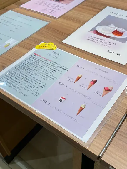まずは、シングル(451円)・ダブル(761円)・トリプル(931円)からフレーバーの個数を選びます。そして、カップかコーンを選択します!コーンは+料金が掛からないのが嬉しいポイントです♪