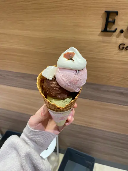 桜ジェラートには、桜の葉と桜あんこが練り込まれていてねっとりと濃厚な味わいでした…!あんこが練り込まれているジェラートは初めてでしたが、合いますね!舌触りもとっても良かったです!桜の味もしっかりあって絶品でした!
