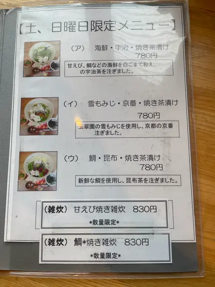 水・木・金曜日は、すしランチ、土・日曜日は、お茶漬けや雑炊が食べられるようです。