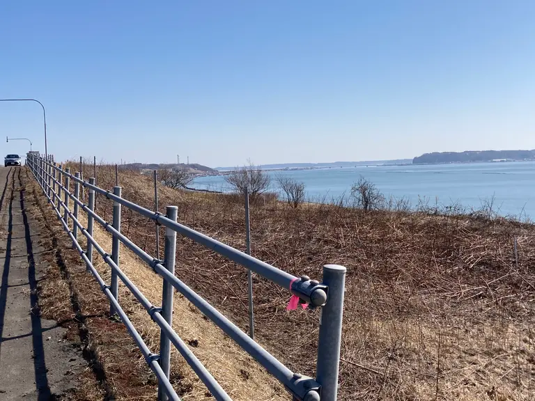 厚岸大橋が見える高台での様子。