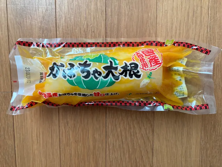 こちらは、国産大根を北海道産かぼちゃで甘口に仕上げたお漬物です。
