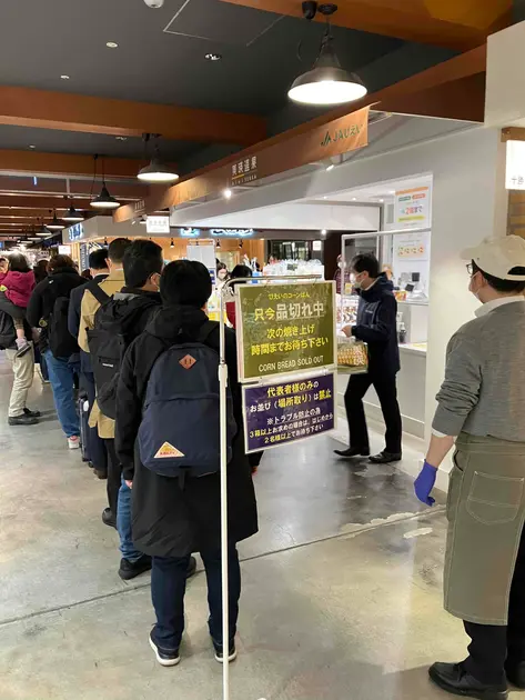 【聞き耳を立てていたところ、だいたい18番目くらいの人が、「まめは売り切れとなりましたので、コーンのみとなりますが、よろしいでしょうか?と言われていました。】