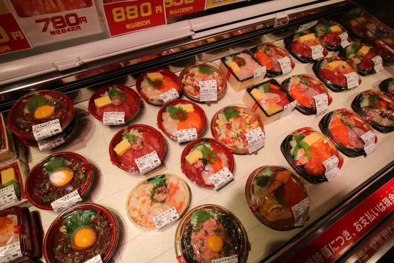 ちょっとつまんでビールも飲んで。幸せです。鮮度バツグンなのは一目瞭然!1パックに一種類か二種類のネタがセットで売られています。仲間内でシェアして食べるのがいいと思いますよ。