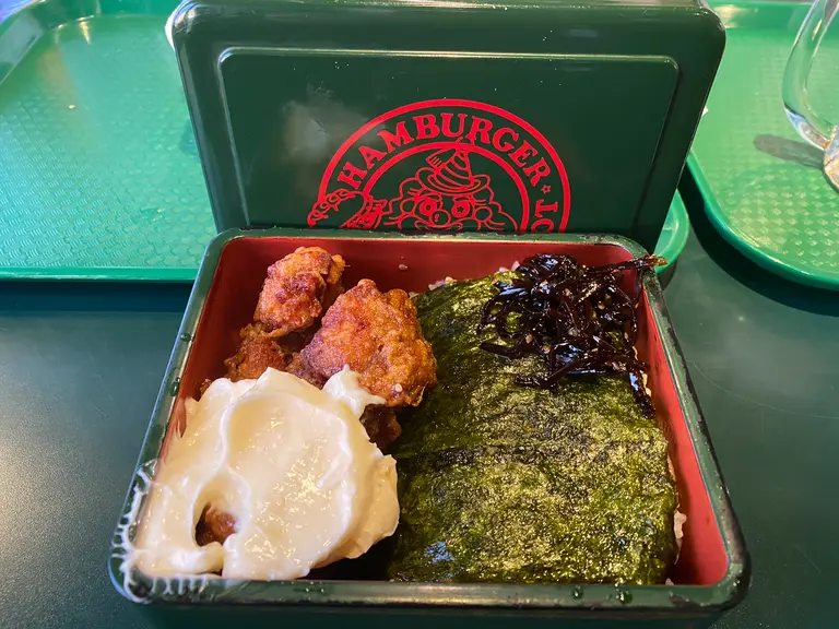 これもオススメ。のり弁にチャイチキがのってます。たっぷりのマヨネーズがまたおいしい。冷めてもおいしいので、いつも函館旅行の帰りにテイクアウトをして、家に帰ってから食べます。チャイチキはパンにもごはんにも合います。