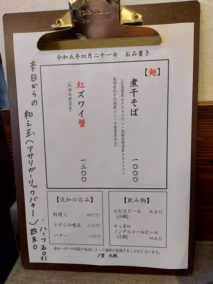 あっという間に食べ終わる、あとふた口ほどを残したところで、この日からと書いてあった「和え玉(アサリガーリックバター)」を追加注文。