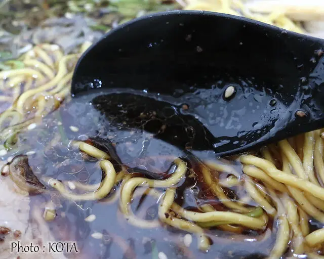 スープのお味は、見た目に反し、とてもまろやかな口当たり。ほんのりと香る酸味に日本伝統の調味料『醤油』の奥深さを感じさせる。