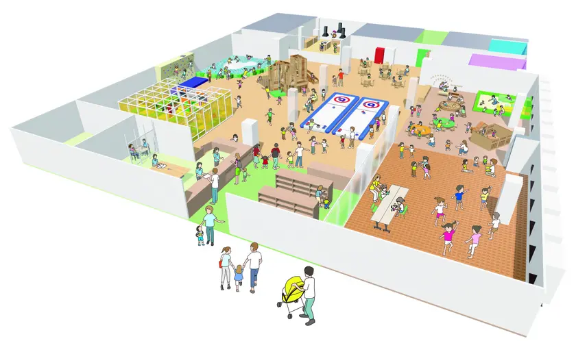 このたび、同じまちきた大通ビル(パラボ)の6階に移転し、わくわくする遊具がたくさん導入されて4月29日(土)にリニューアルオープンします。床面積は従来の3倍以上となる約1400平方メートルで広々です。