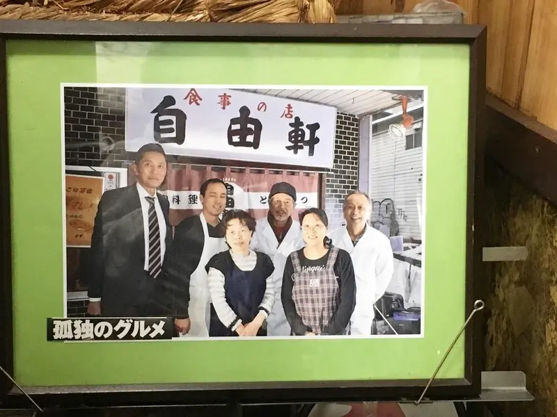 店内にはロケの時の写真でしょうか、井之頭五郎役の松重豊さんと、店主役の本田博太郎さんと一緒に、本物の店主と息子さんが写った写真が飾られています。
