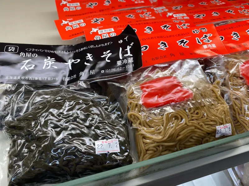 また、美唄の名物グルメ「角屋の袋入りやきそば」もこちらで購入可能。
