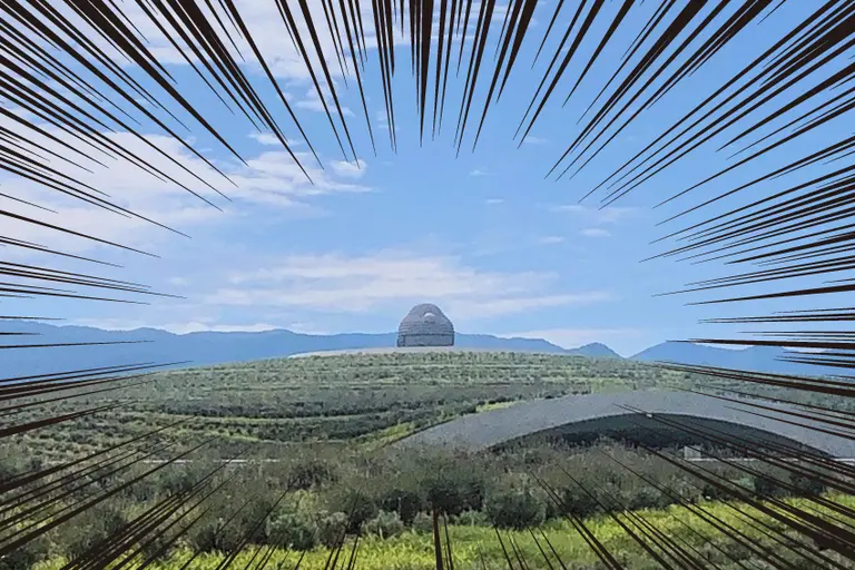 緑で埋め尽くされたドームの中から、頭だけがひょっこり!