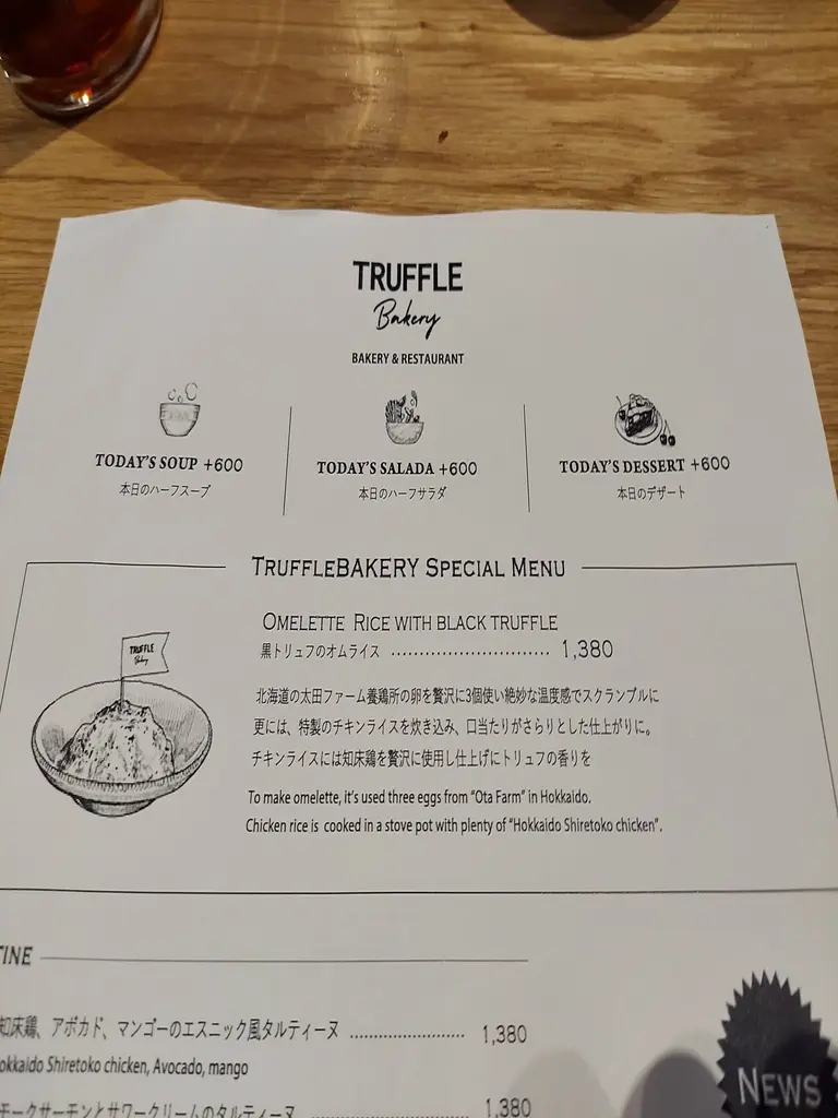 写真では分かりにくいですが、スペシャルメニューの「黒トリュフのオムライス」のほか、タルティーヌ、メインメニュー、パン、デザートなど全13商品ありました。