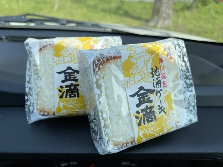 「地酒ケーキ金滴」は、滝川のスイーツ専門店「野上菓子舗」が製造。滝川の隣町である新十津川町の酒蔵「金滴酒造」のお酒と酒粕を使用しています。