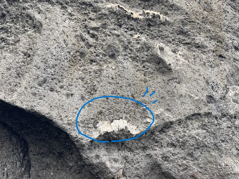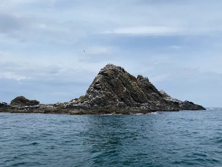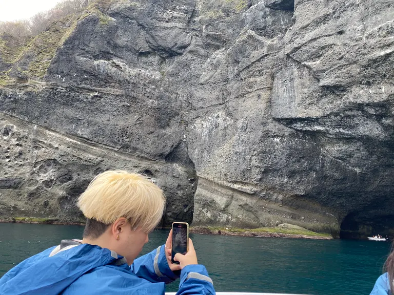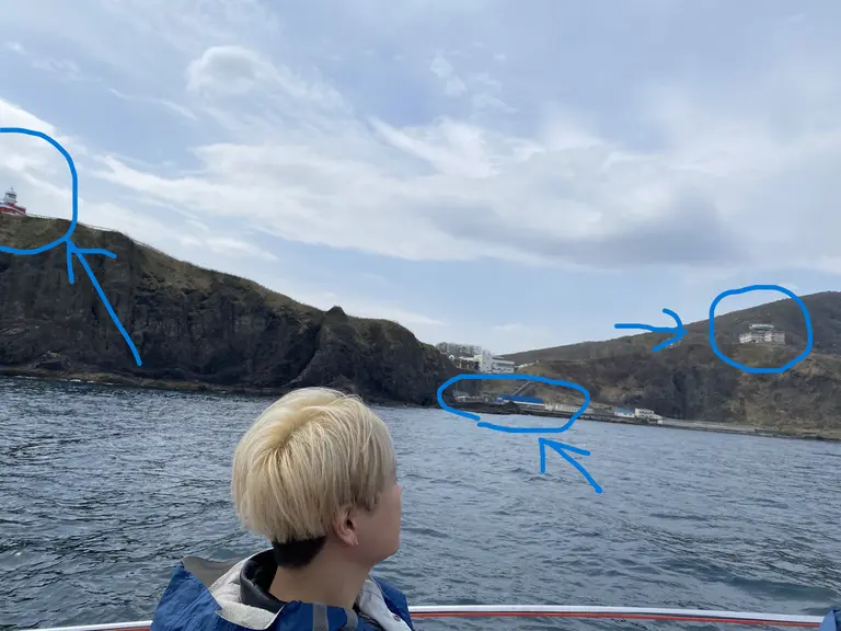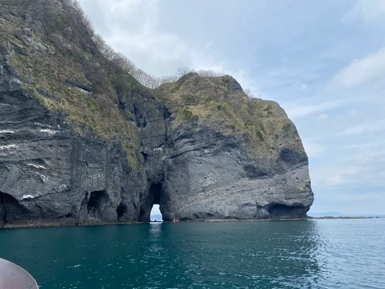 余談ですが、崖の表面、所々白くなっている部分がありますね、こちらは海鵜の巣なのだとか!