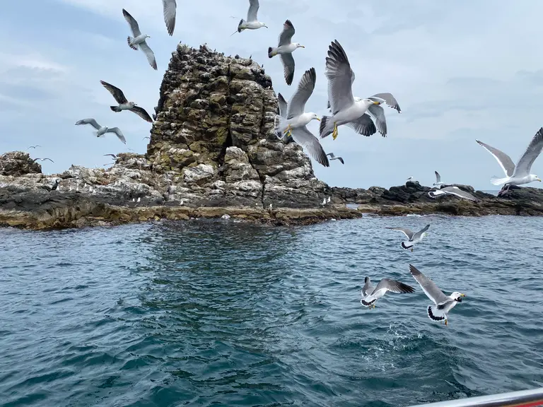 そこでは、船長からかっぱえびせんを支給されるので、みんなで海鳥に餌やりをしました。