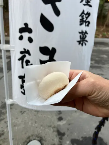 この「判官さま」は、そば粉入りの柔らかな餅の中につぶ餡がたっぷり入った餅菓子で、こちらの店舗でしか購入できない限定品となっています。