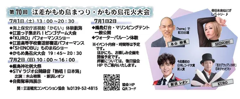 江差のシンボルである「かもめ島」と青い海を会場にした道内でも数少ない海の祭典です。