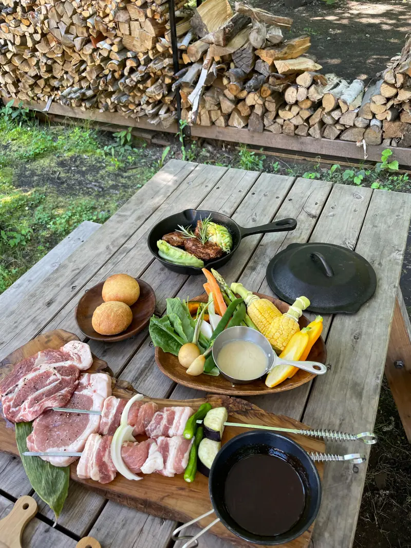 隣接する畑からとりたての野菜は焼いてもそのままでもとにかく美味しい。